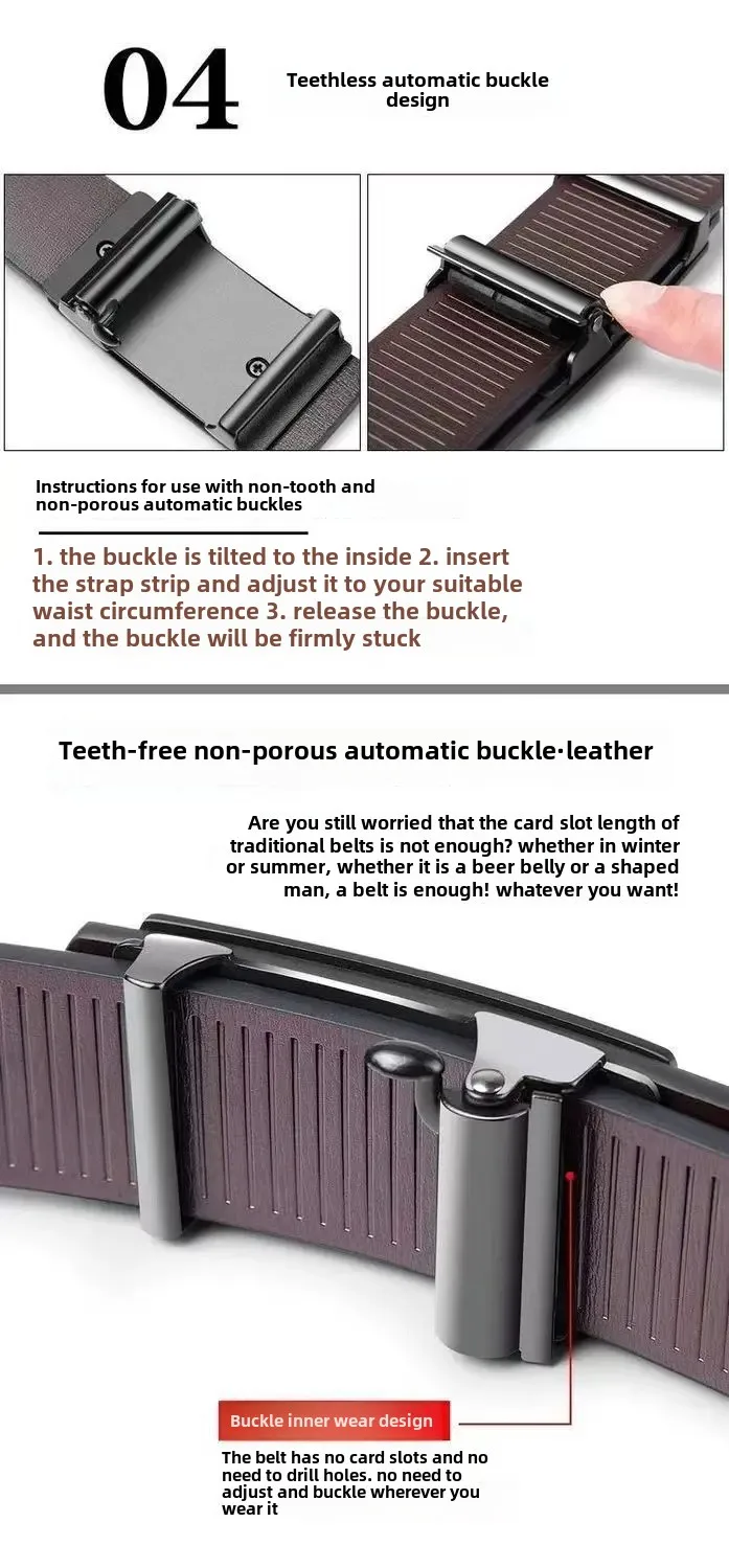 • Fivela automática elegante e sem dentes:Equipado com uma fivela automática moderna e sem dentes, este cinto garante fácil ajuste e fixação segura.